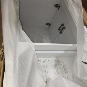 Original price was: $1,300.00.$800.00Current price is: $800.00.Wyndham Collection- Sheffield 60″ Vanity in White with White Carrara Marble Countertop. Has a space for a square undermount sink but does not come with the sink or faucet.